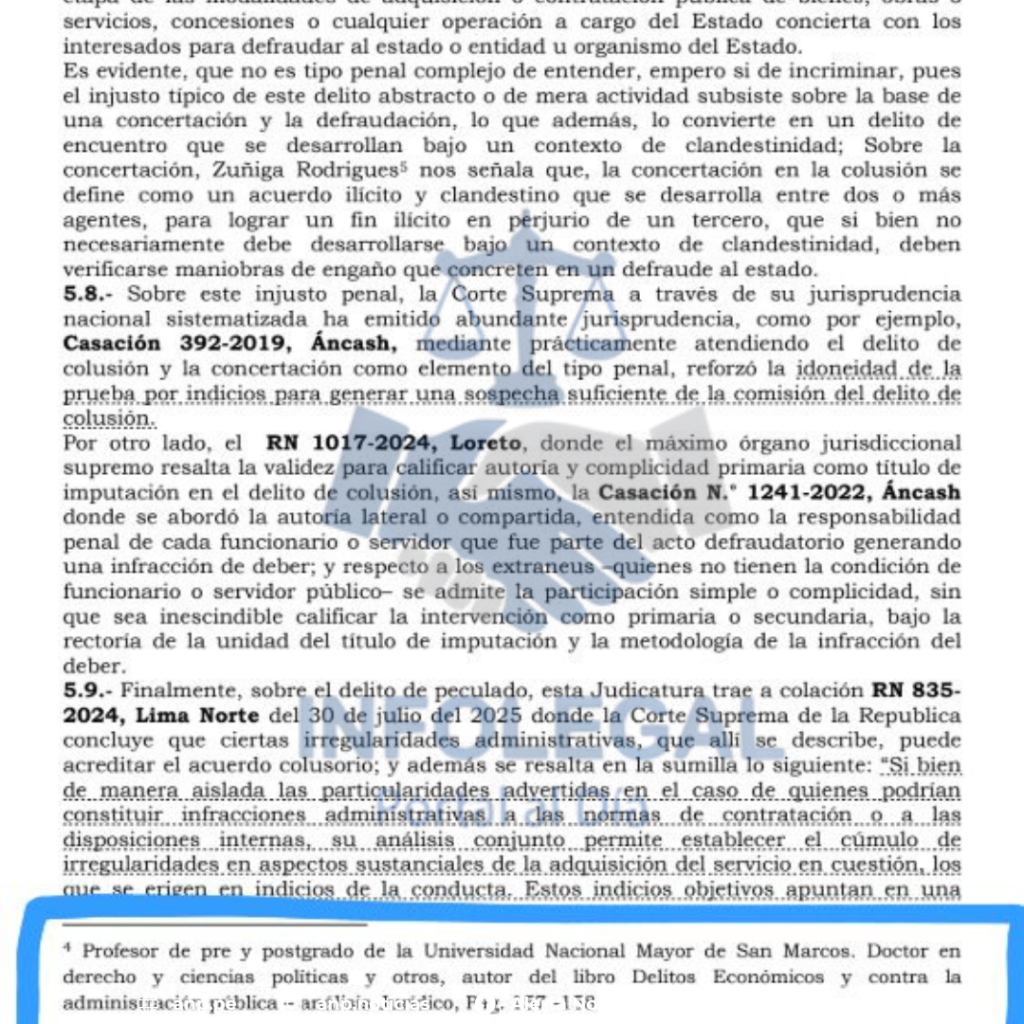 El punto más controvertido es la citación de una obra jurídica empleada para sustentar un agravante penal. Según Bermúdez, el magistrado mezcló datos personales del autor con referencias bibliográficas incompletas, omitiendo información esencial como editorial, año y ciudad de publicación. Para el especialista, no se trata de un simple descuido formal, sino de un error que evidencia desconocimiento de reglas básicas de citación jurídica.